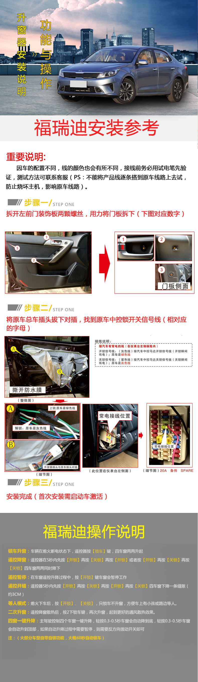 起亚09-16款福瑞迪升窗器安装图文