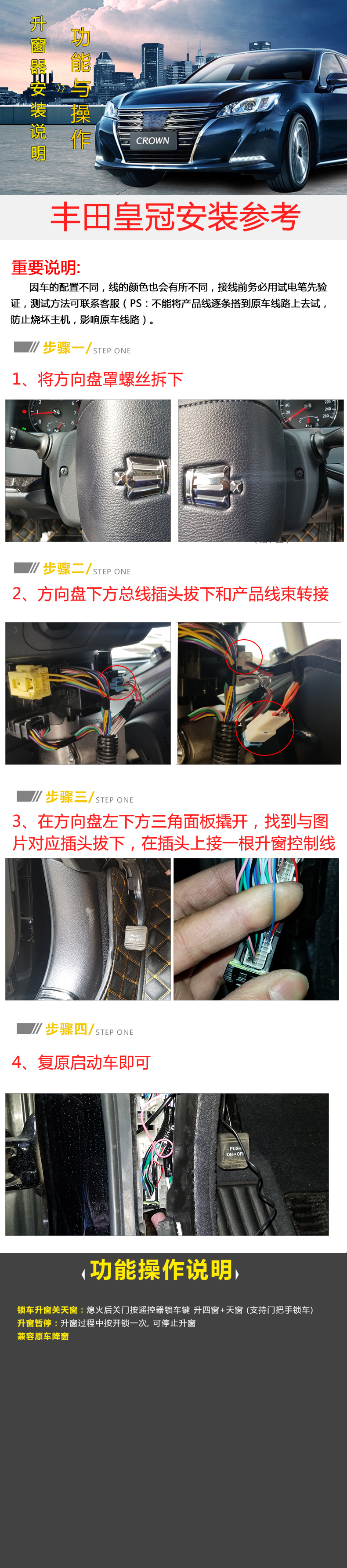 丰田全新皇冠升窗器安装图文