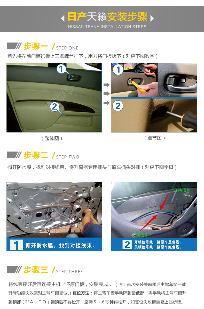 日产老天籁升窗器安装图文