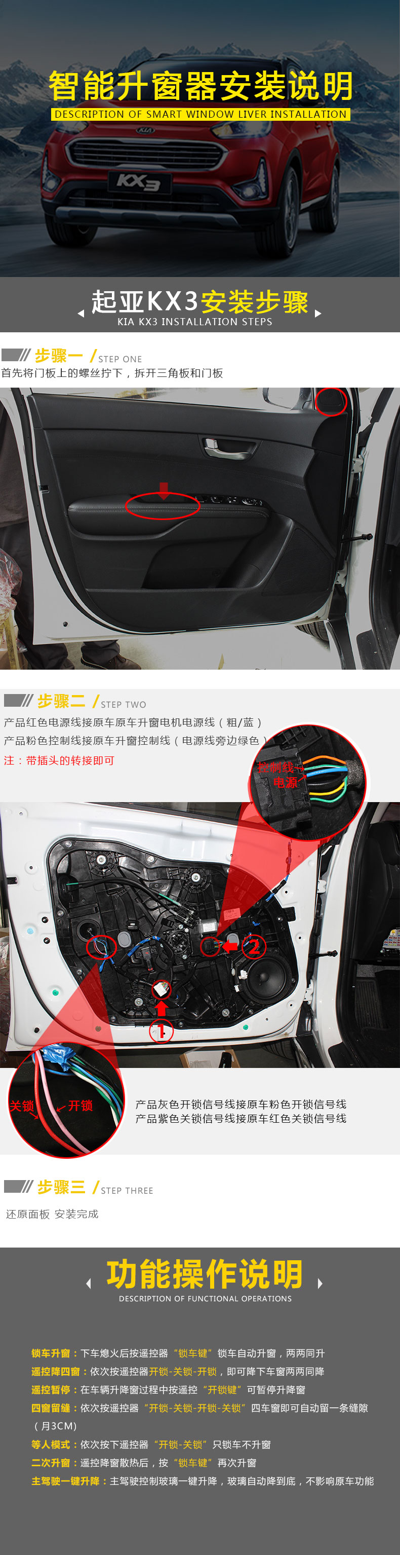 起亚KX3旗舰版升窗器安装图文
