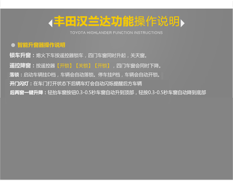 丰田15-17款汉兰达总线版升窗器安装图文