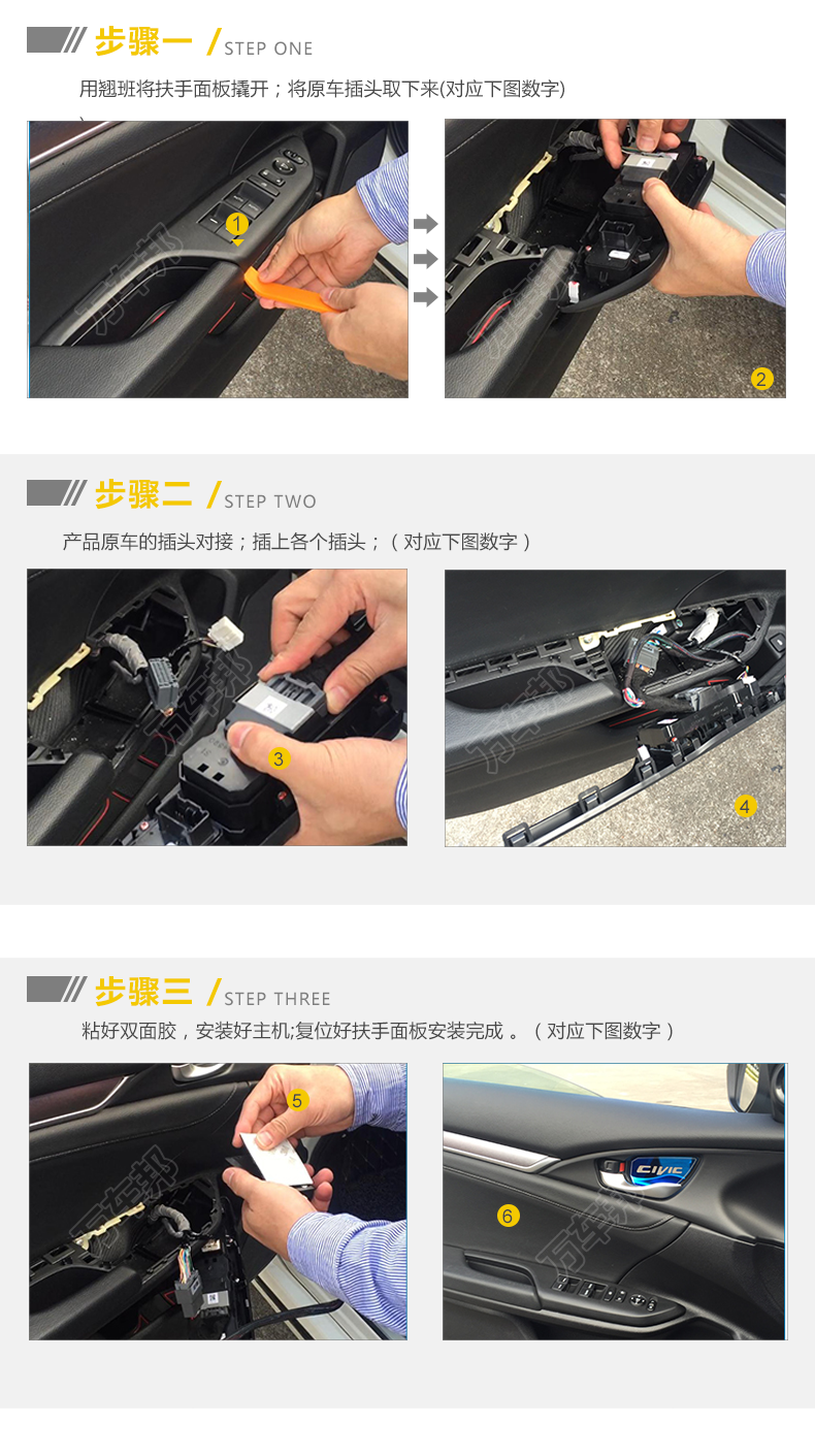 本田10代思域总线版升窗器安装图文